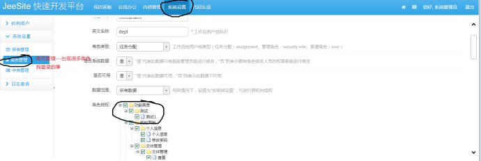 系统设置 菜单管理 角色管理 我登录的是管理员 点击修改 进入修改项 然后在添加的菜单打钩保存