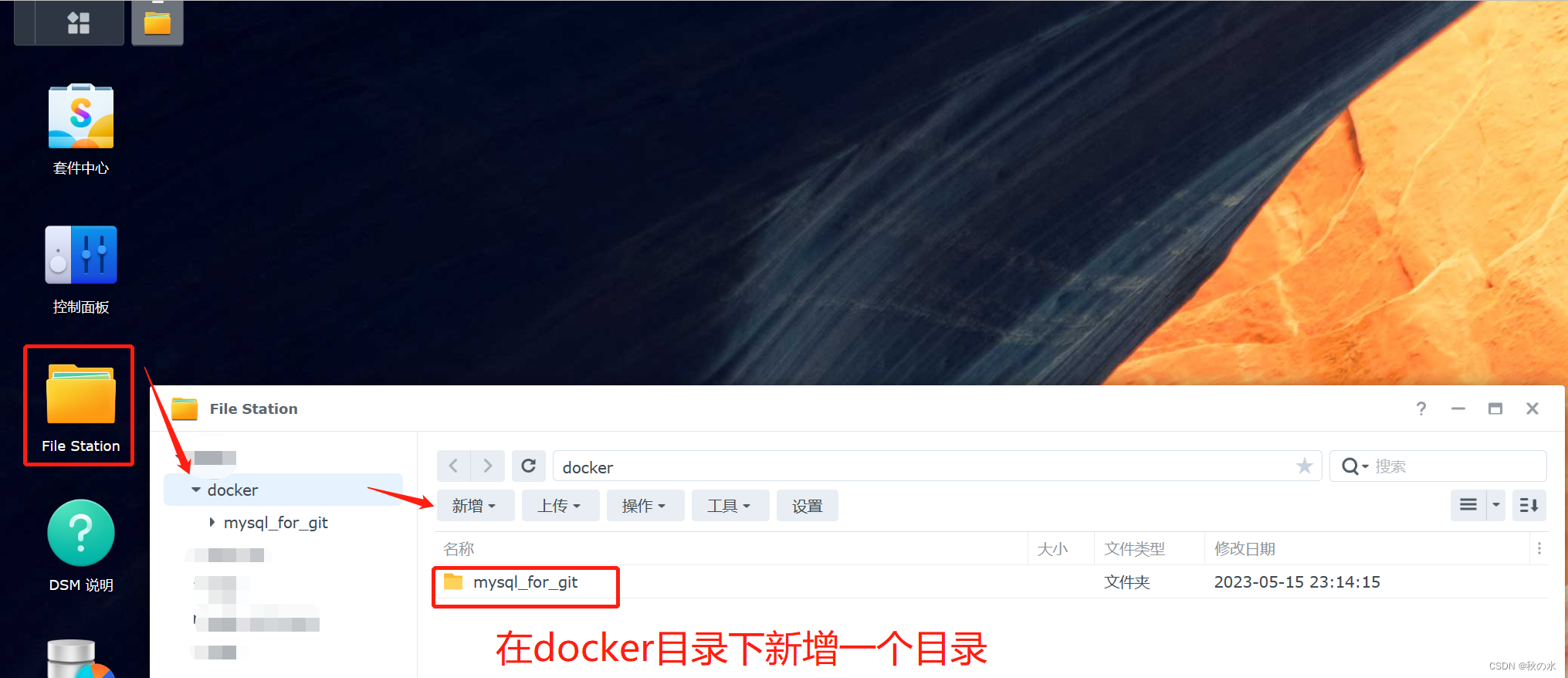 安装好Docker后,在File Station新建mysql文件夹mysql_for_git