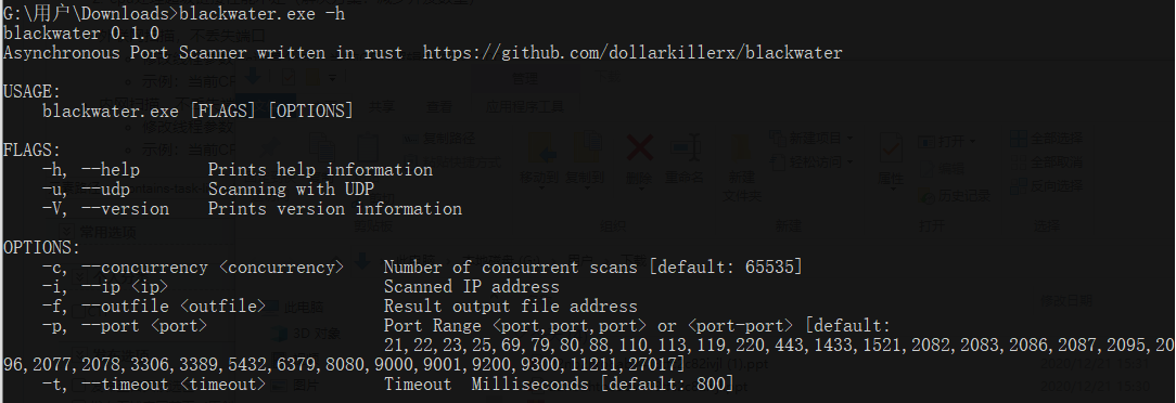 Blackwater是锈编写基于SCP并发模型的扩展扫描器官方测试1秒内扫描6W个端口并且极少的丢包率