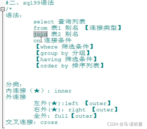 外连接:用于查询一个表有,另一个表没有的记录。