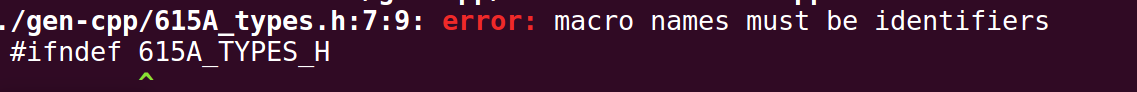 用 以数字开头的.thrift文件(615A.thrift)生成cpp文件,其中会生成615A_types.h,内容是