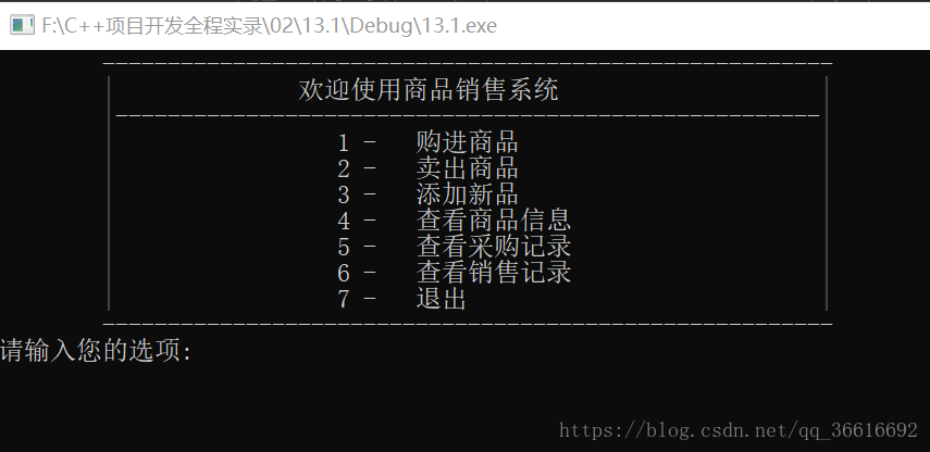 printf("\t| 欢迎使用商品销售系统 |\n");