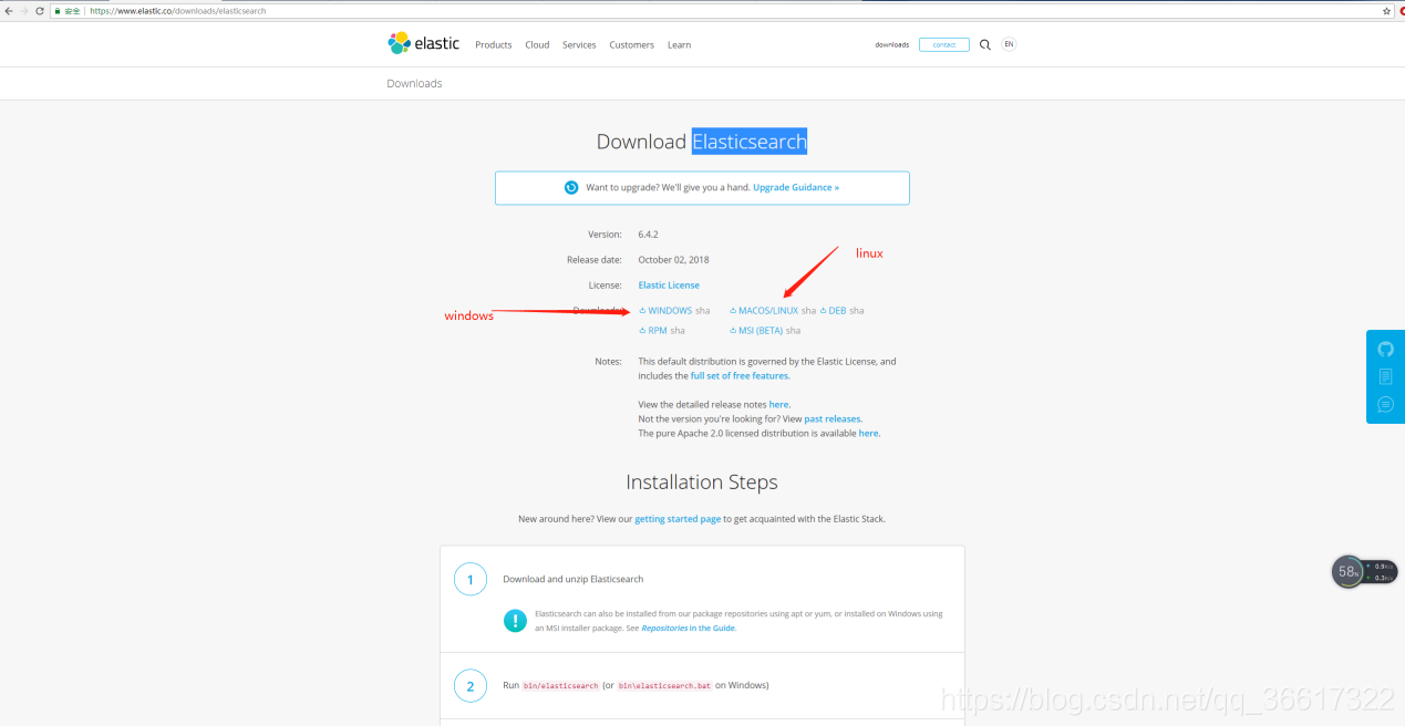 1. 从官方下载中心ElasticSearch Download下载ElasticSearch安装包