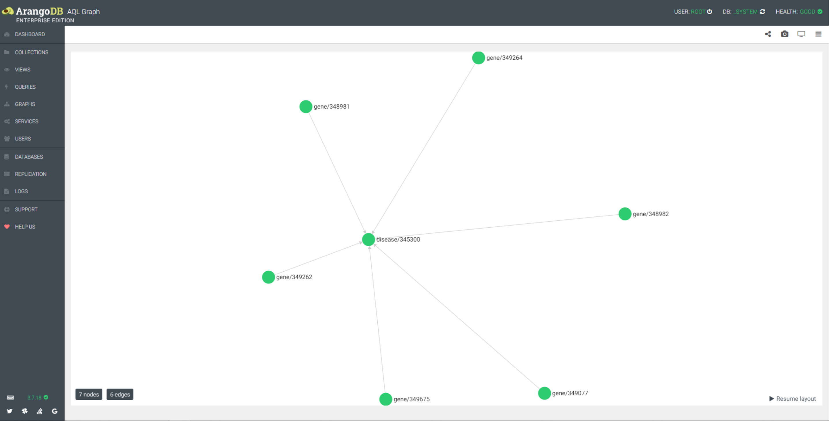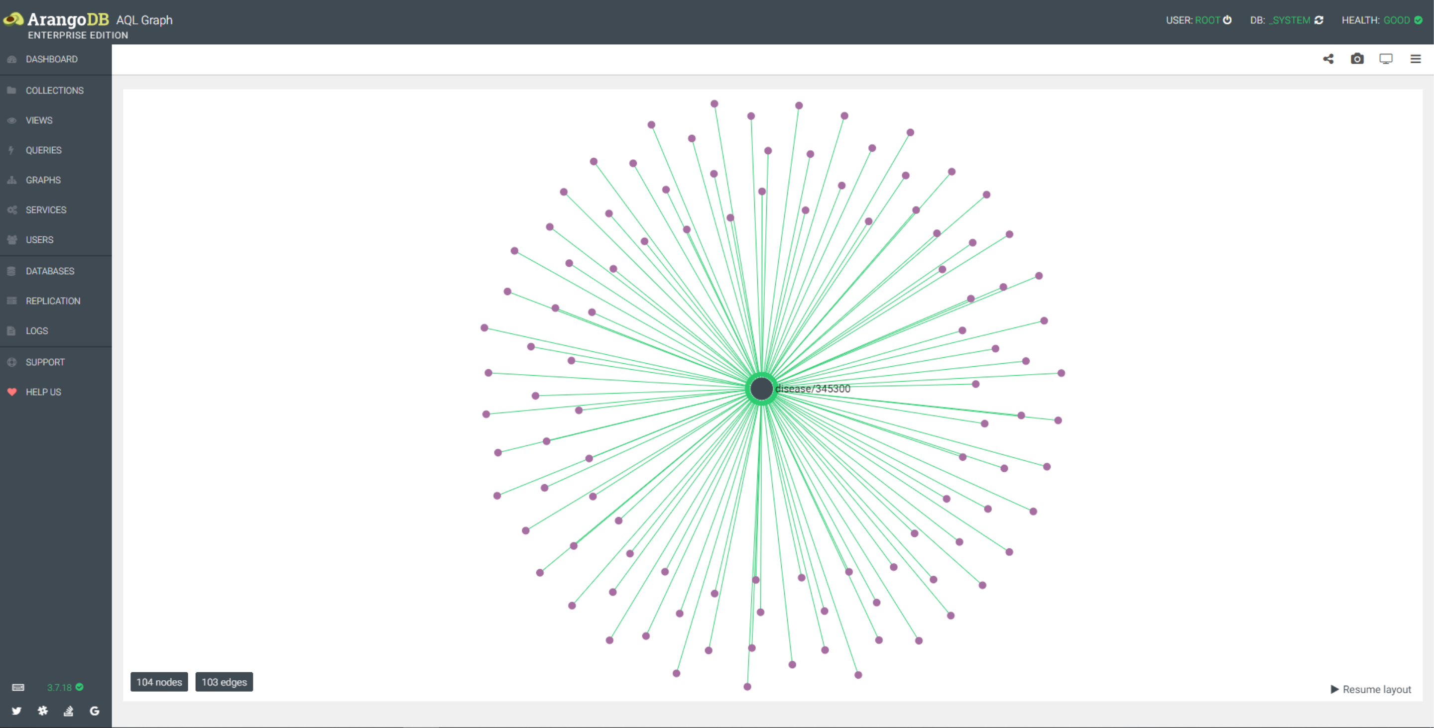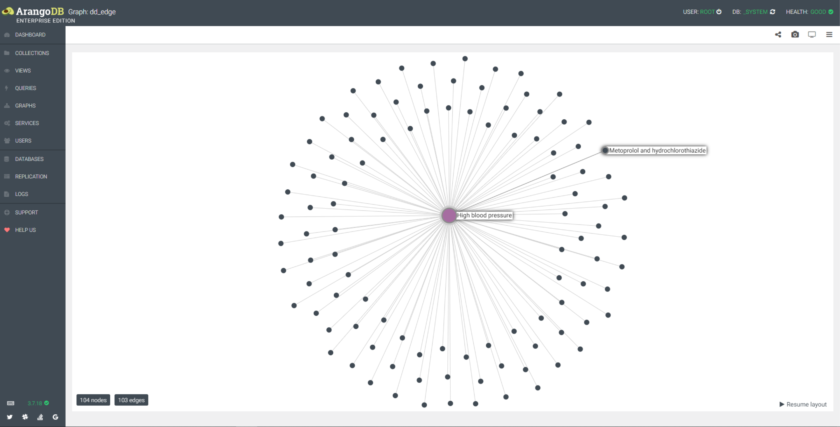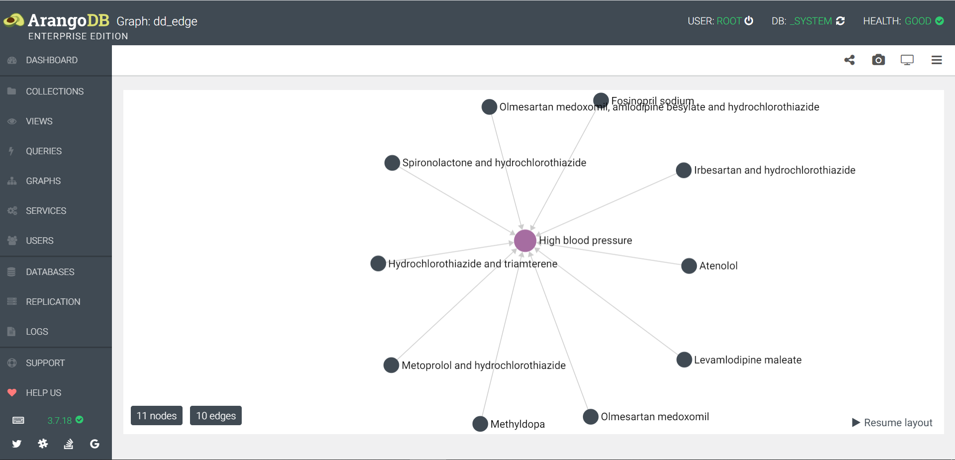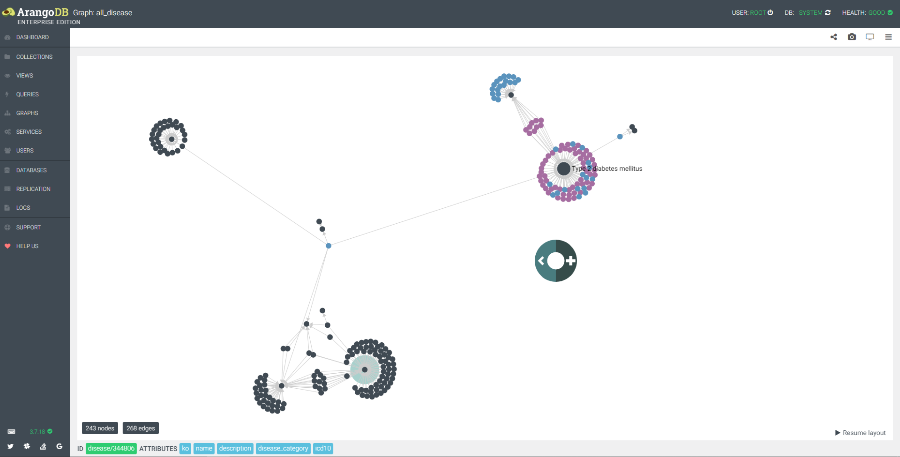 - dd_edge 图已疾病 disease/345300 为起点,2个深度图,以疾病和药物的名称显示