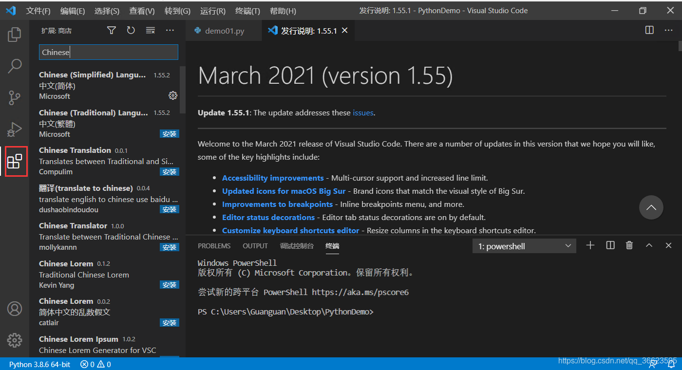 首先打开VScode安装插件如图(然后根据功能搜索下列插件,并安装即可)