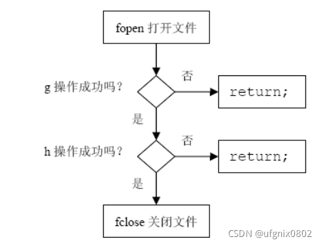 在使用文件的过程中,因某些操作失败而造成函数提前返回的现象经常出现。这时函数UseFile的执行流程将变为: