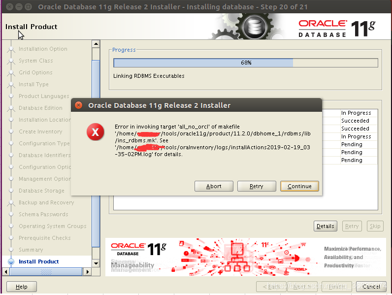 cd /home/test/tools/oracle11g/product/11.2.0/dbhome_1/sysman/lib/