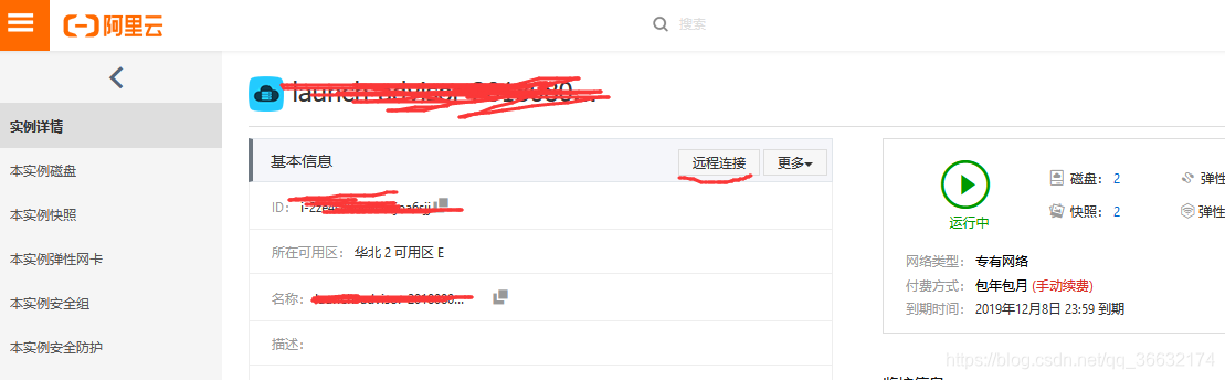 进入阿里云网站的云服务器管理控制台,点击远程连接: