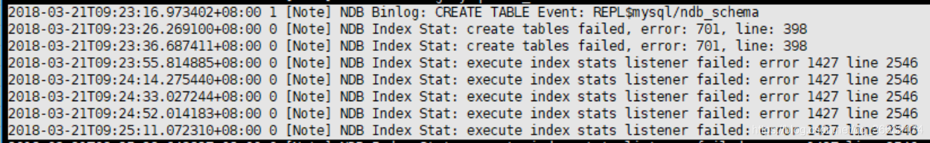 2018-03-21T10:57:44.537059+08:00 0 [Note] NDB Index Stat: execute index stats listener failed: error 701 line 2546