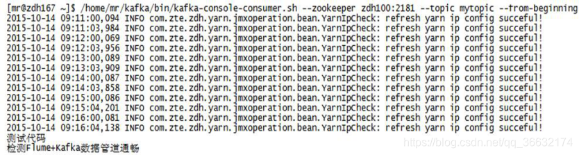 因为配置文件中配置的是:agent1.sources.r1.command = tail -F /usr/software/flume/dir/logdfs/test.log
