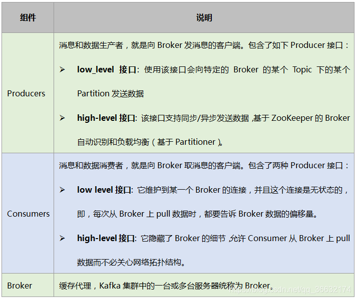 Producer,consumer实现Kafka注册的接口,数据从Producer发送到Broker,Broker承担一个中间缓存和分发的作用。
