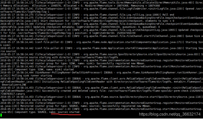 注:命令中的agent1表示配置文件中的Agent的Name,如配置文件中的agent1。flume-client.properties表示配置文件所在配置,需填写准确的配置文件路径。