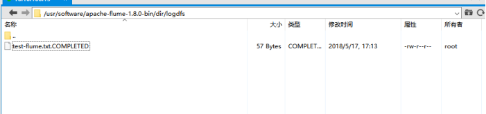 所以只有在/usr/software/flume/dir/logdfs目录下名字叫test.log的文件才会被执行,显然这种配置是十分局限的,此处只为测试用,之后会根据具体情况进行配置。