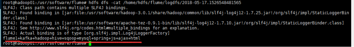 写入内容后,启动hadoop01~hadoop03的agent,和hadoo04、hadoop05的collector