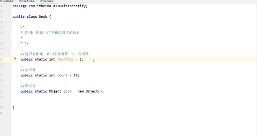 * 1.循环 while(true) * 2.同步代码快synchronized(Desk.lock) * 3.判断共享数据是否到了末尾(到了末尾)Desk.count == 0 * 4.判断共享数据是否到了末尾(没到末尾,此时执行核心逻辑)else **/