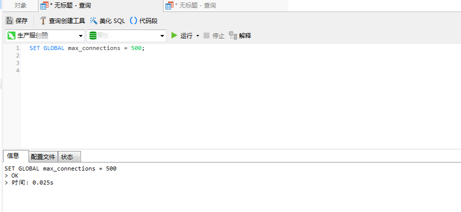 方法1:max_connections=500