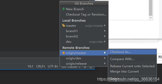 选择一个远程分支,然后点击checkout as ,然后会弹出这个框