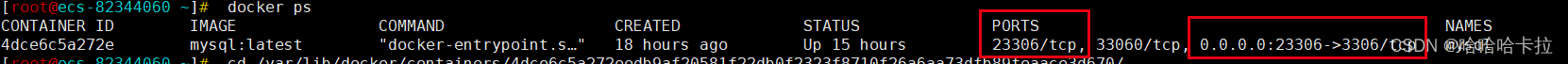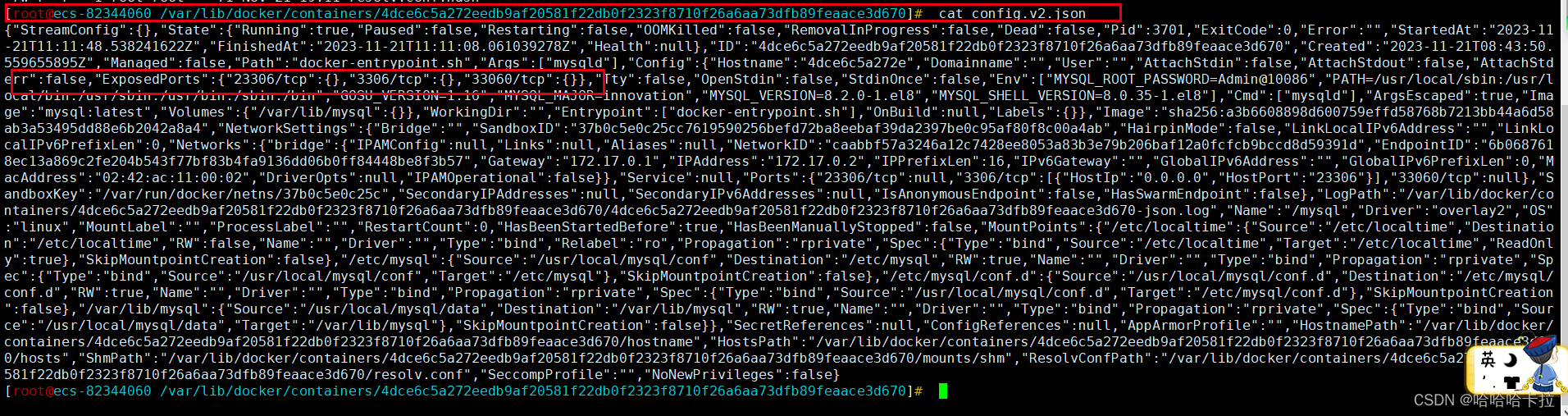2.进入/var/lib/docker/containers/目录下,有一个容器id开头的纯字符串文件夹即对应容器的配置文件