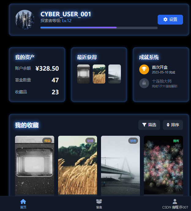 { id: "h002", itemName: "全息投影仪", time: "2023-05-14 10:15", rarity: "epic", series: "科技未来" },