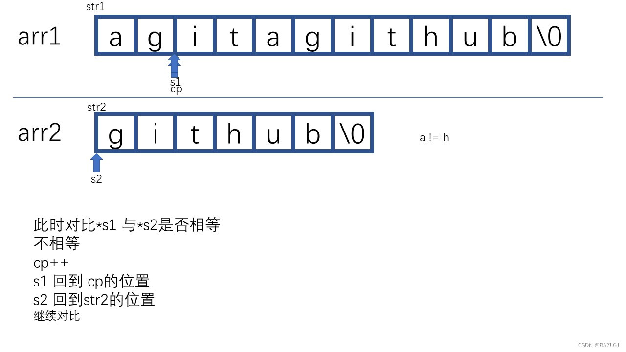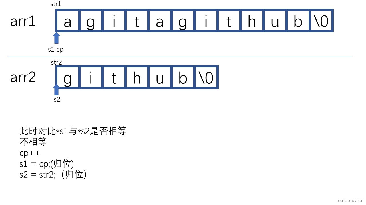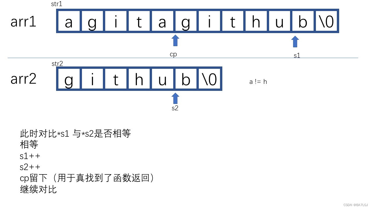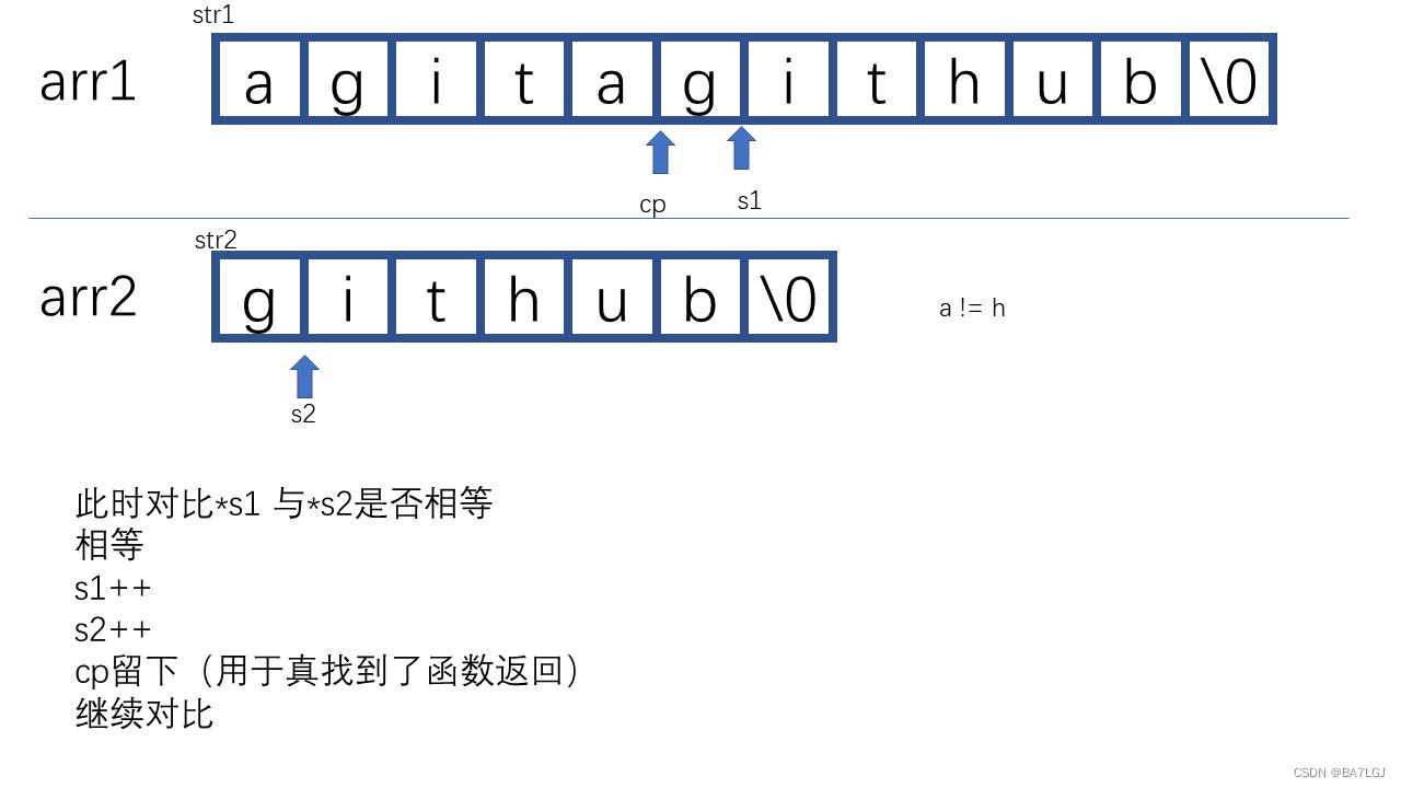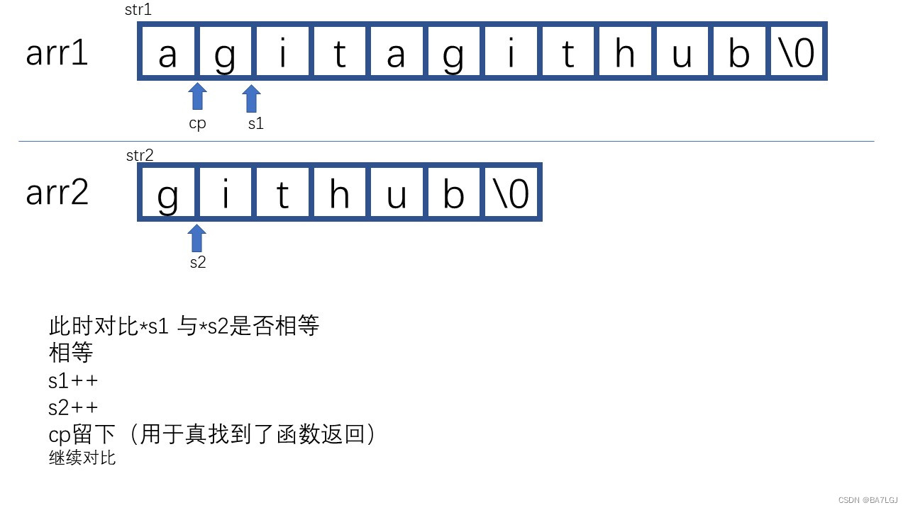 //需要指针自增以进行对比,直到不同. s1/s2为空时代表函数到尽头了必须退出