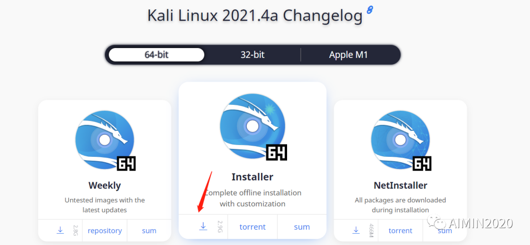 本文种使用的镜像如下:Kali Linux 64-Bit (Installer) 点击即可下载