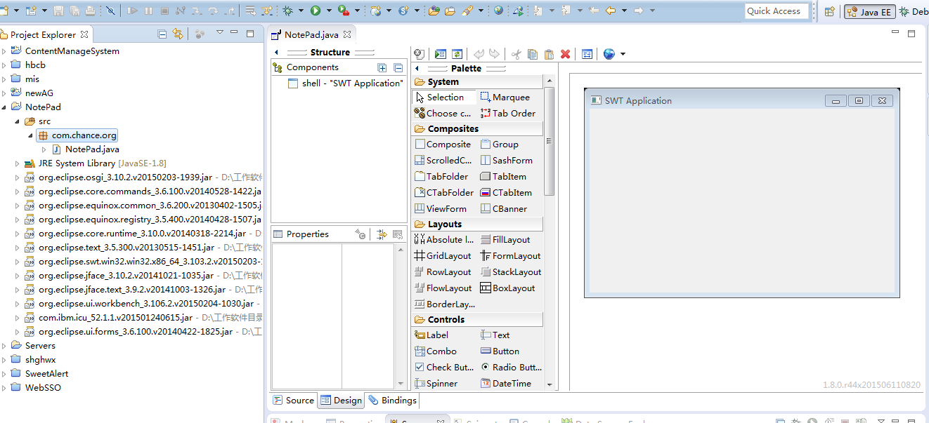 找到和你使用的exlipse版本相同的SWT版本,我当前使用的版本是4.4.2,我已这个版本实例。
