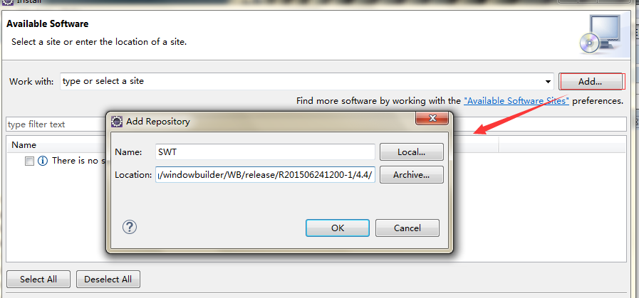 1)、如在线安装类似,再在在线安装的第二步的时候,将SWT官网地址改成本地地址,后面的步骤一样!