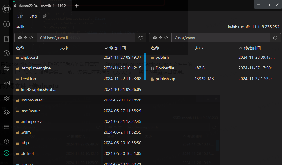 需要注意的是Dockerfile文件中的 EXPOSE后方的端口需要与 Properties\launchSettings.json 文件中的 ASPNETCORE_HTTP_PORTS 指定端端口一致,该端口在部署到 docker 后,将作为容器端口使用。