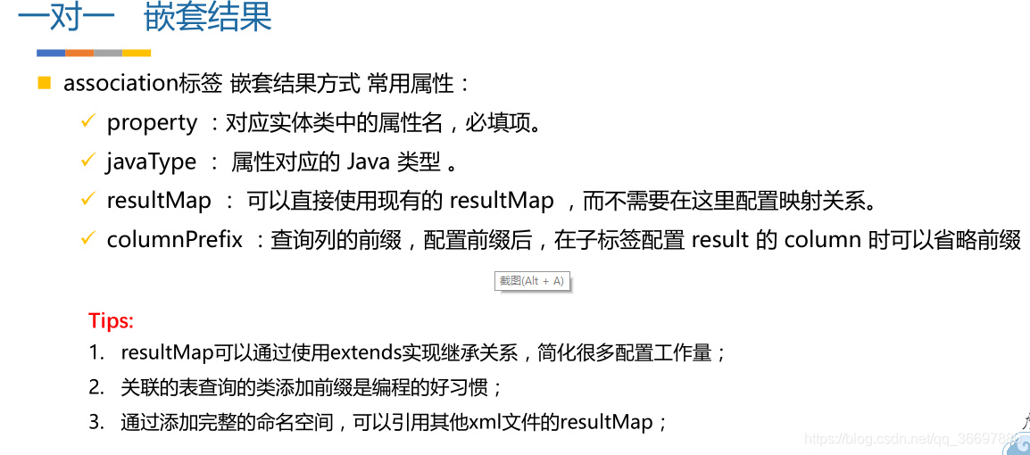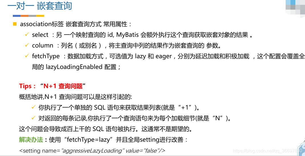 嵌套查询:通过执行另外一个 SQL 映射语句来返回预期的复杂类型