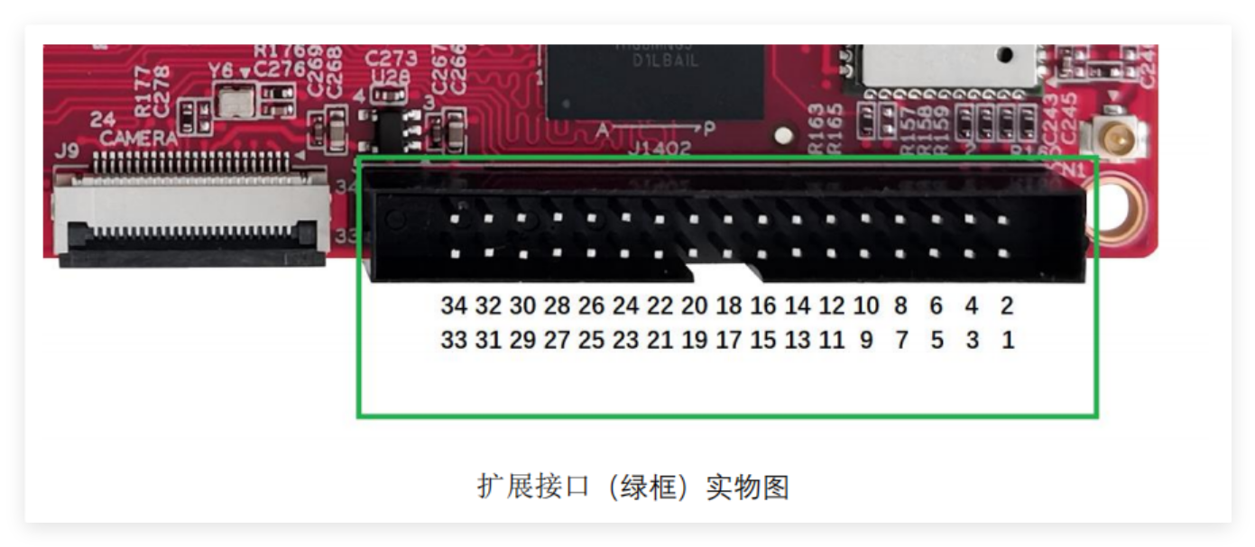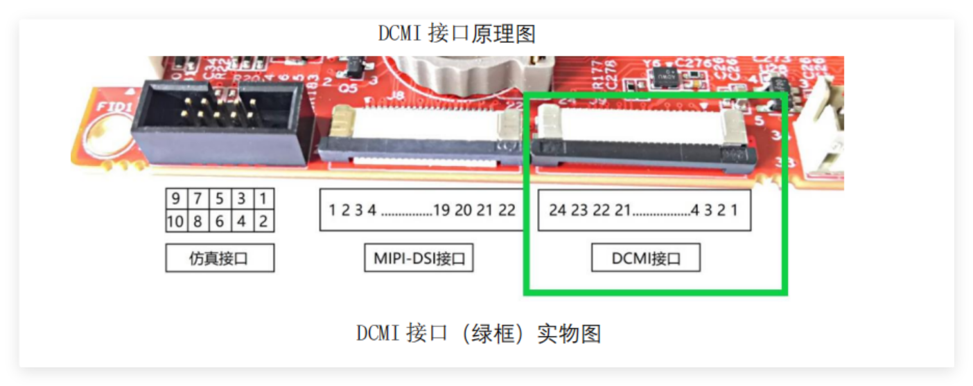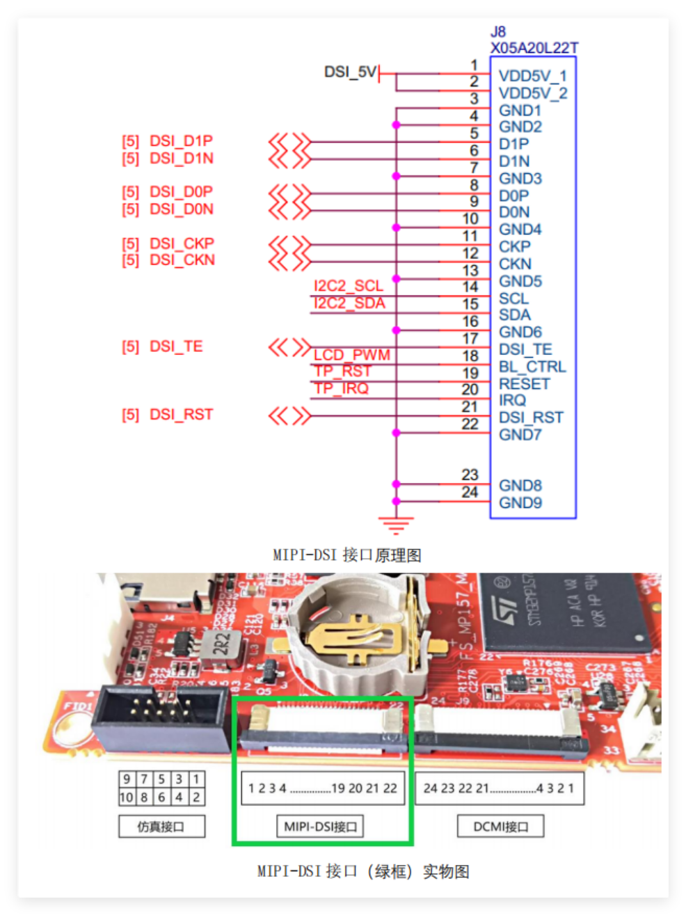 注意:MIPI-DSI 接口(绿框)实物图中的数字代表实际接口引脚号顺序。