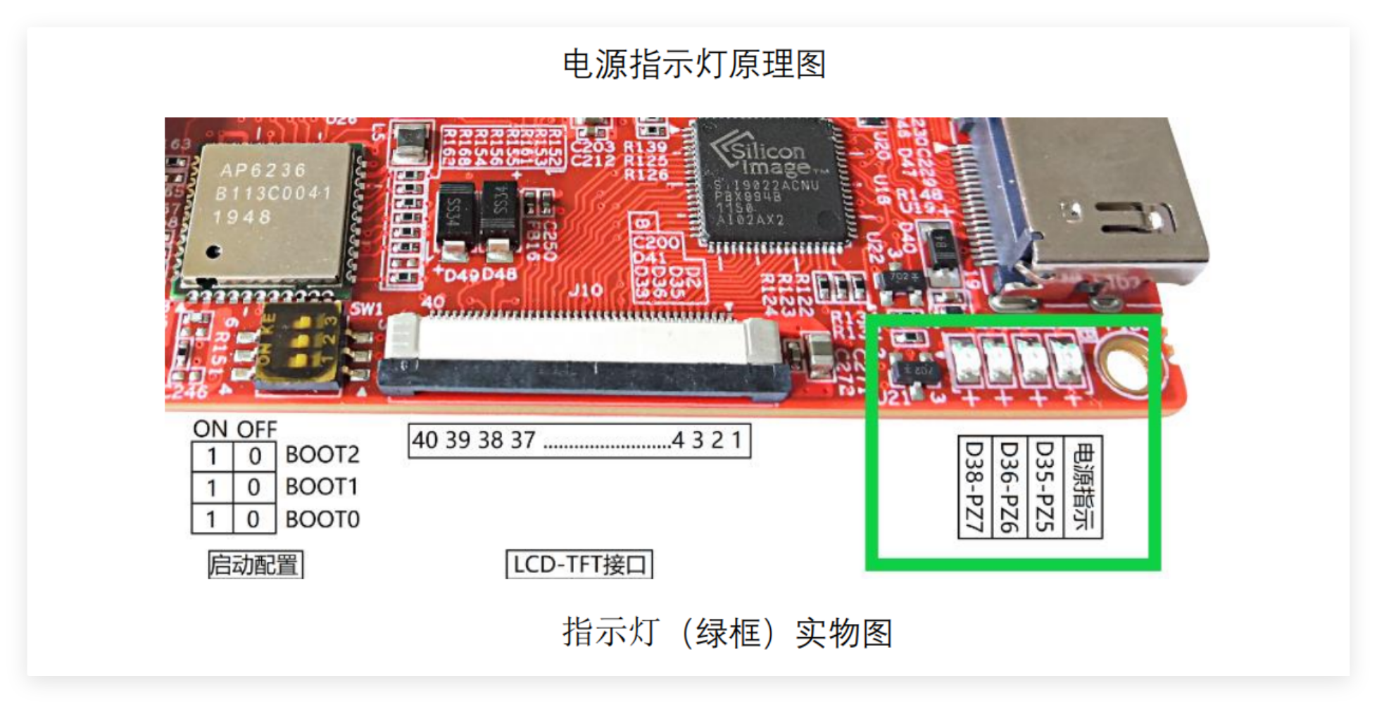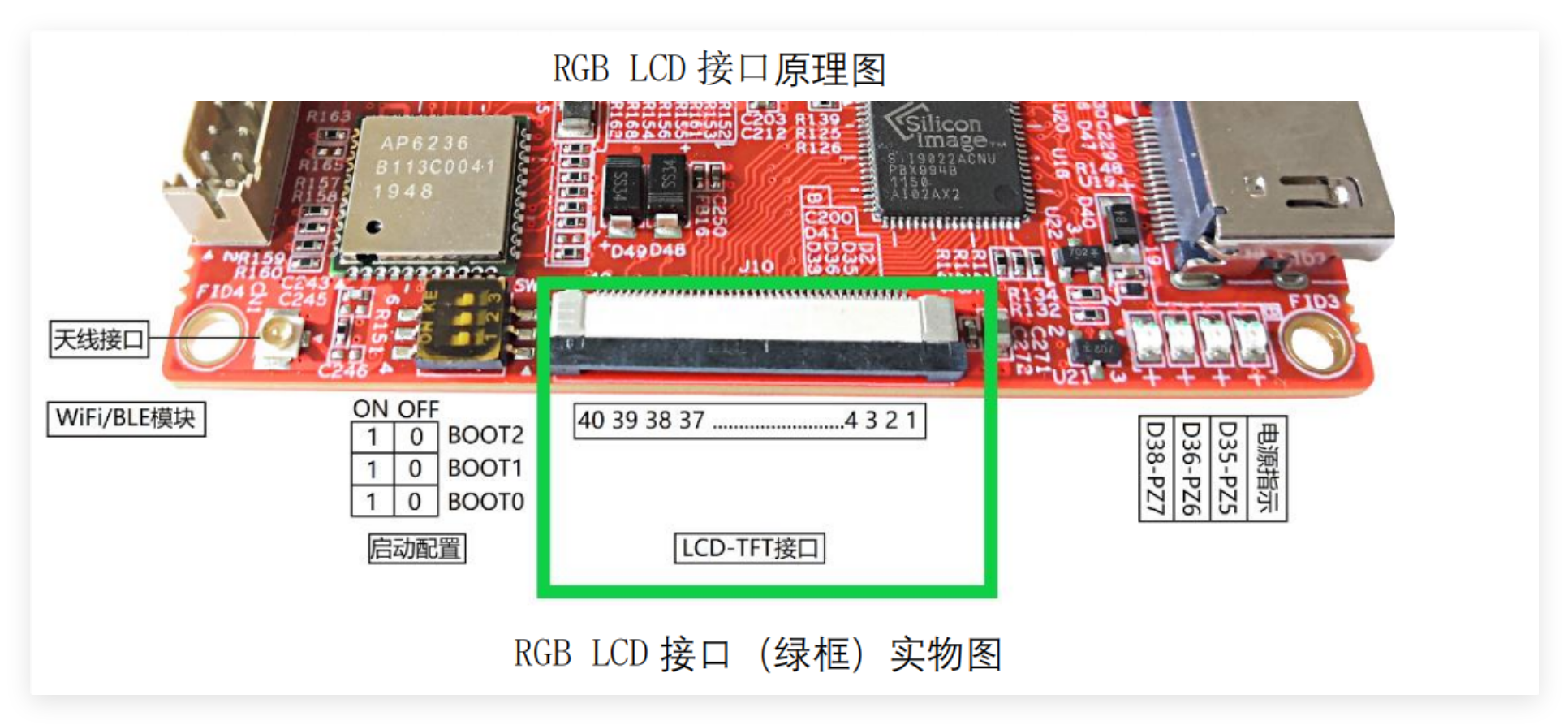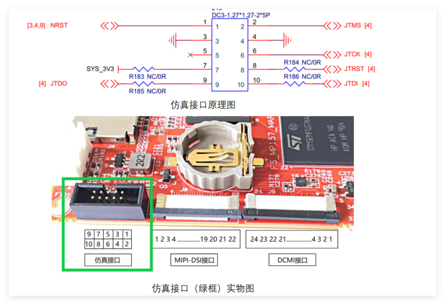 注意:MIPI-DSI 接口(绿框)实物图中的数字代表实际接口引脚号顺序。
