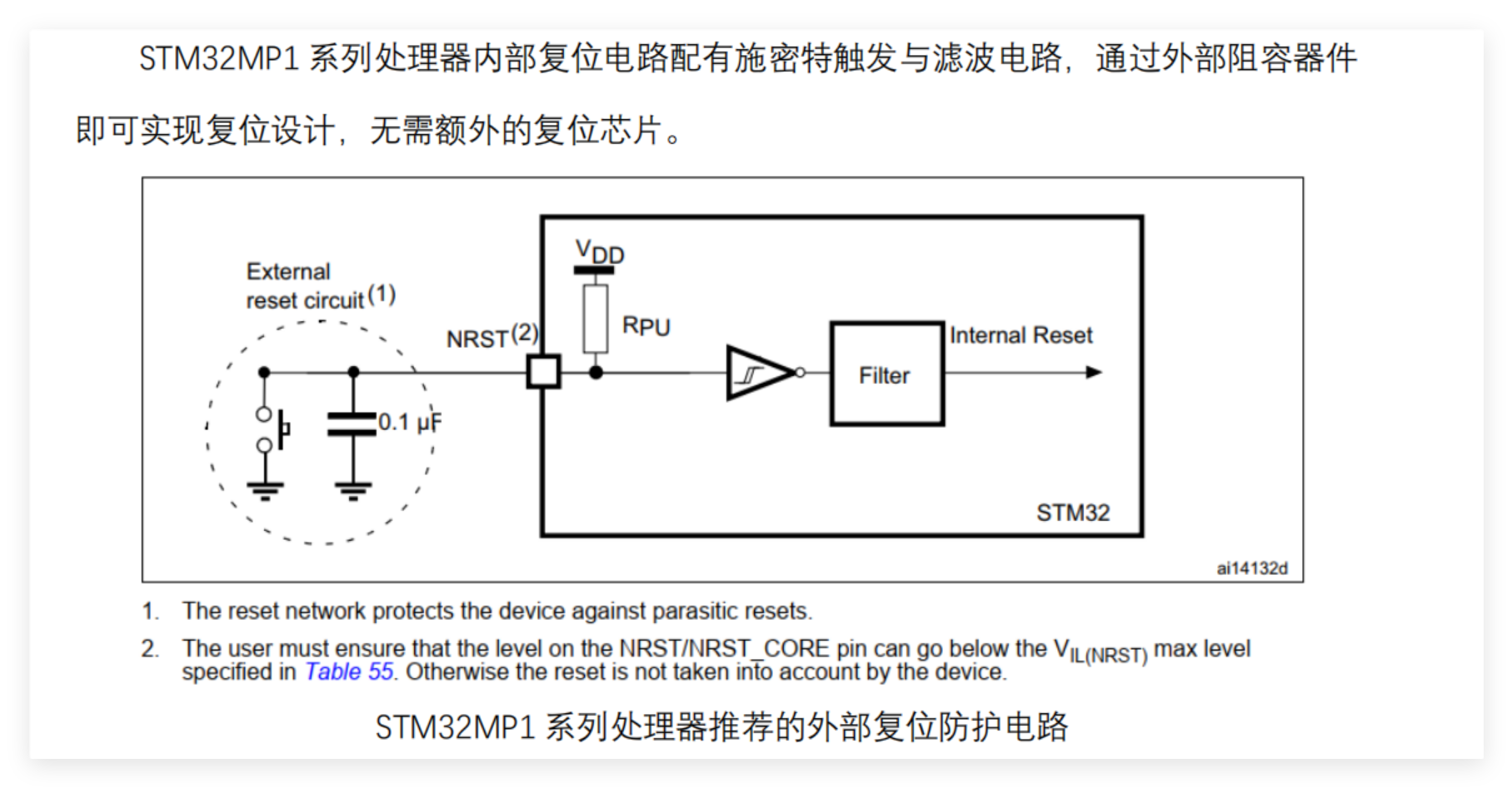 FS-MP1A 开发板配置 2 路按键,1 路为系统复位按键,用于 MPU 复位与外设复位; 另外 1 路用户自定义功能按键,可用于系统从睡眠模式或待机模式唤醒。电路设计如下图