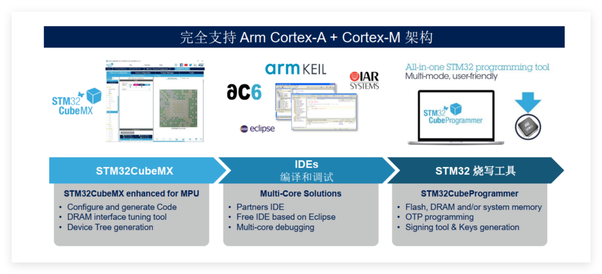 3 . STM32 系列生态系统成熟,并具备经过验证的软件、工具和技术支持,使用户在该平台 上能够提高开发效率,缩短上市时间 。