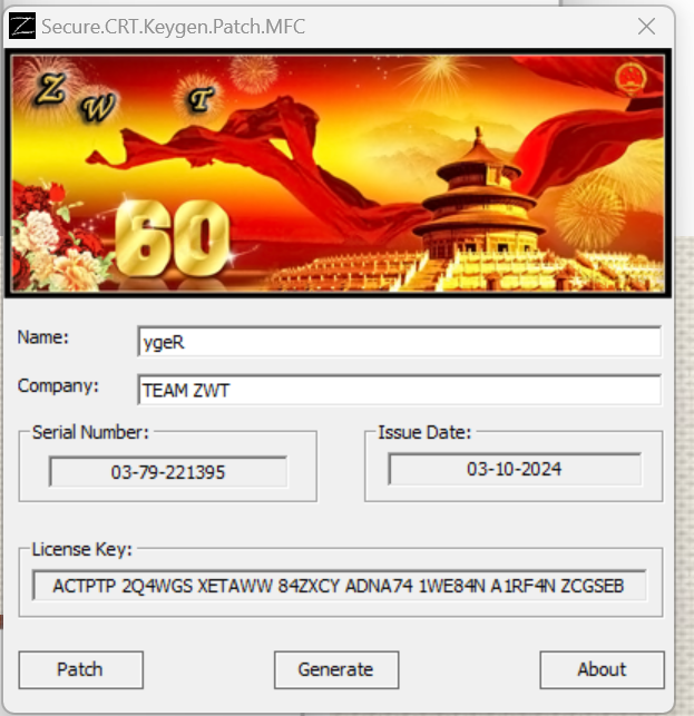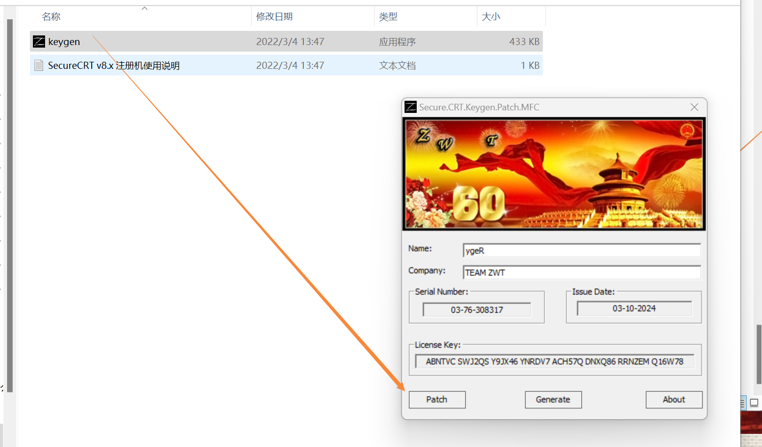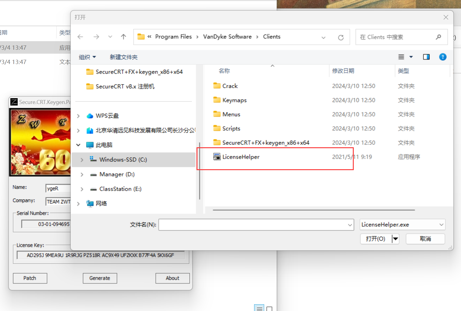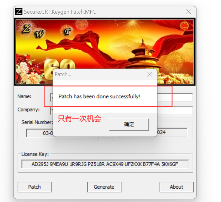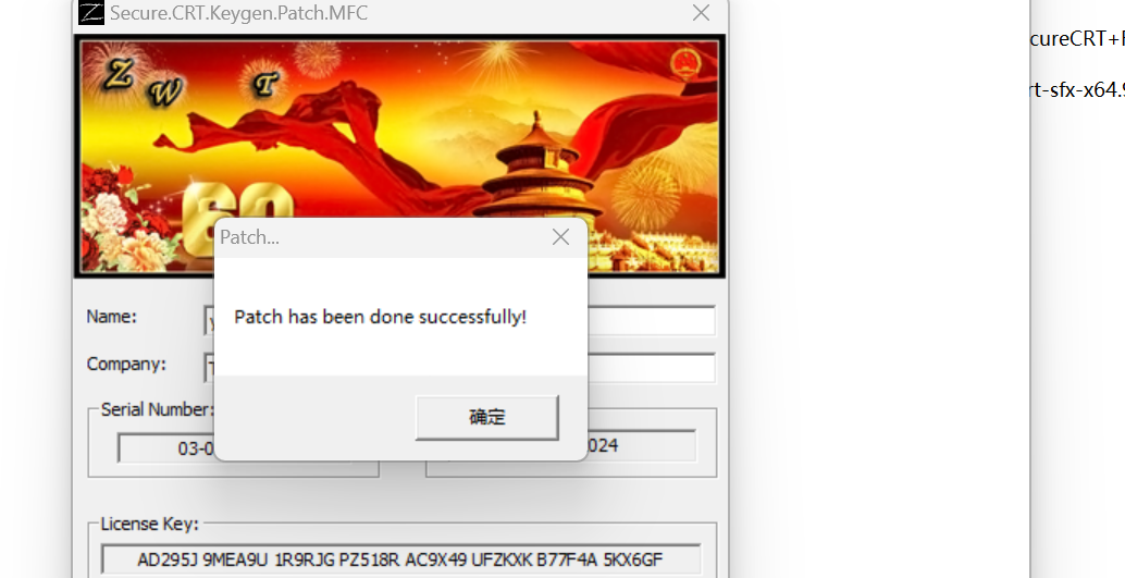 5 以管理员身份-运行注册机-点击patch-此时会让你选择 SecureCRT.exe 和 LicenseHelper.exe 的位置