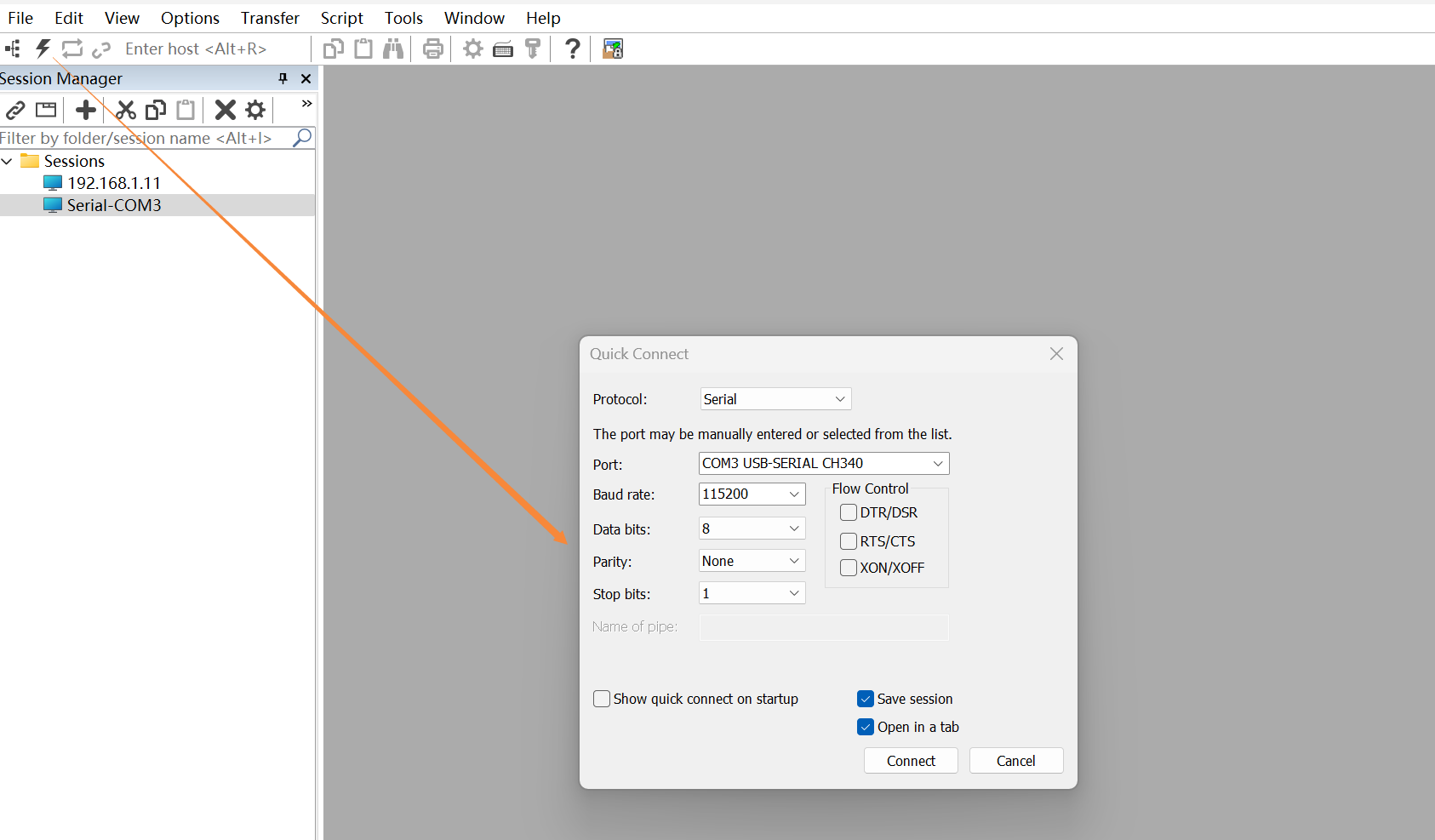 9 SecureCRT的串口链接方法: