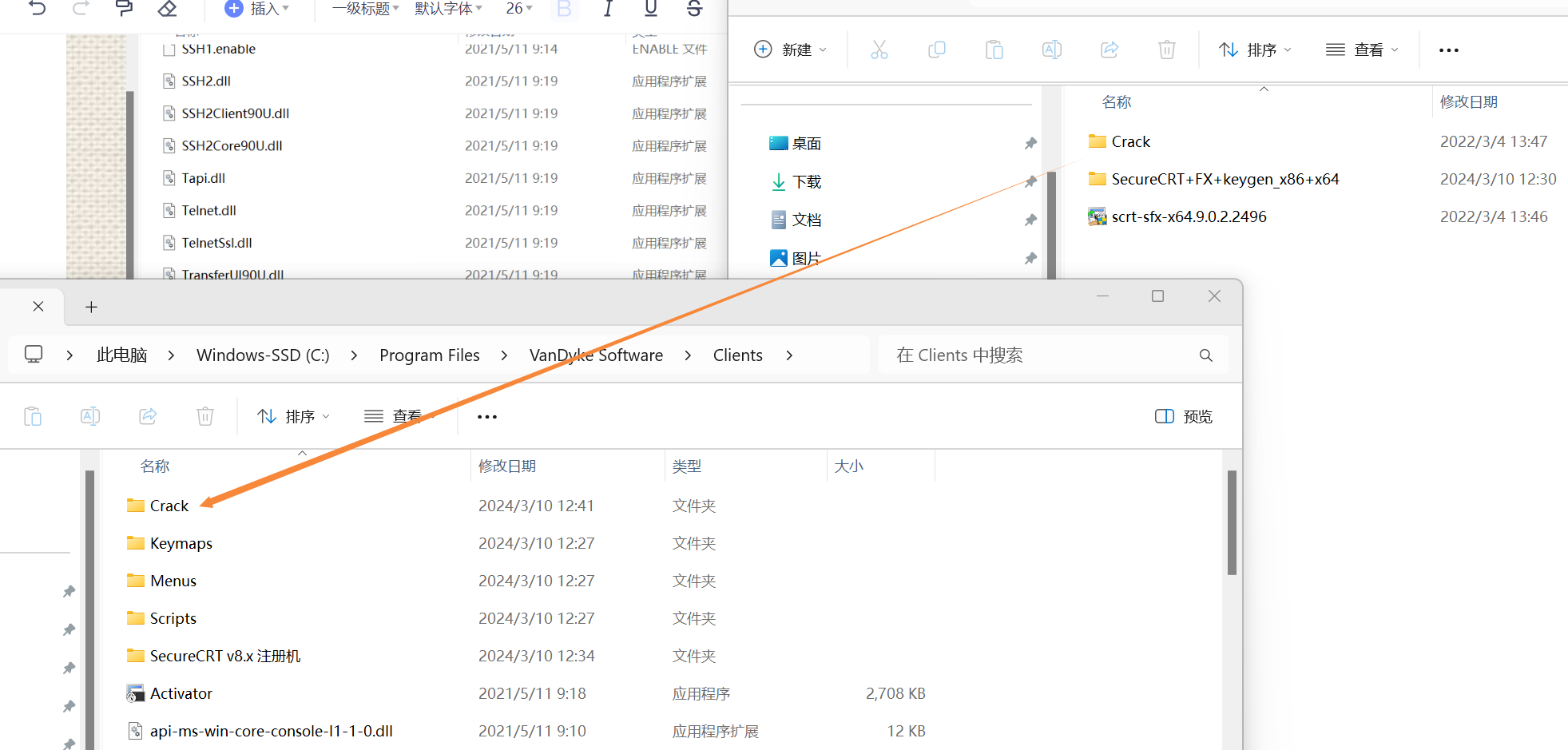 - 应用 Patch 成功之后,会出现 SecureCRT.exe 和 LicenseHelper.exe 的 .bak 备份文件