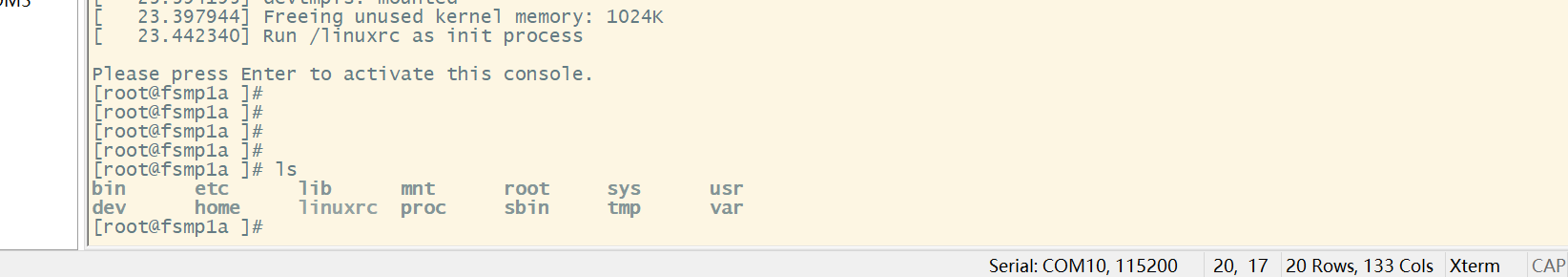 |---> linux内核的地址 启动启动成功之后的效果如下: [root@fsmp1a ]# 输入各种linux命令或者运行应用程序
