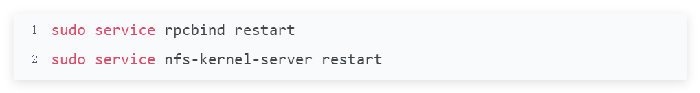 sudo service tftpd-hpa restartsudo service rpcbind restartsudo service nfs-kernel-server restart