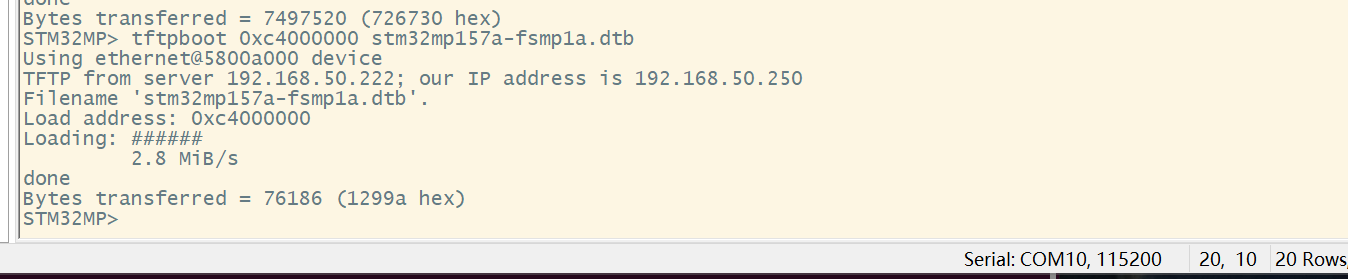 STM32MP> tftp 0xc4000000 stm32mp157a-fsmp1a.dtb