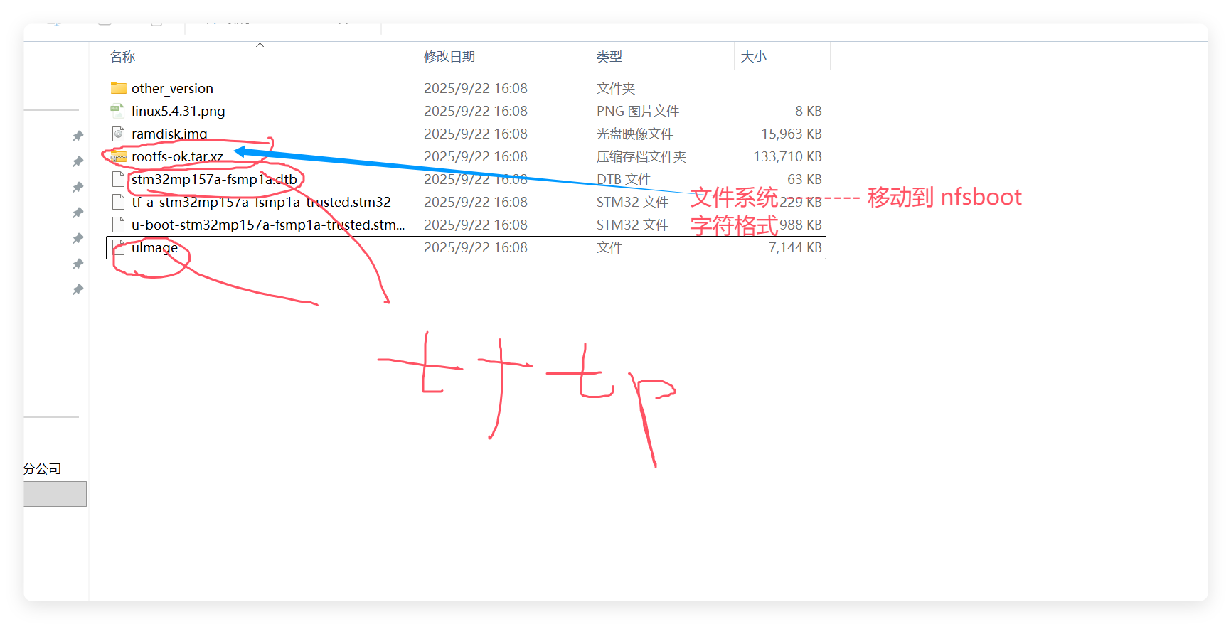 - 拷贝 uImage stm32mp157a-fsmp1a.dtb rootfs 到tftpboot中。