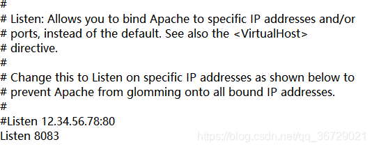找到 #Listen 改为 Listen:8083(linux中开放的端口号8083)