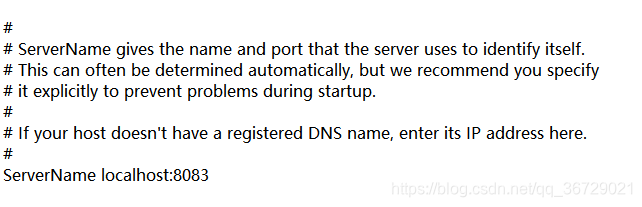 找到#ServerName http://www.example.com:80改为ServerName localhost:80