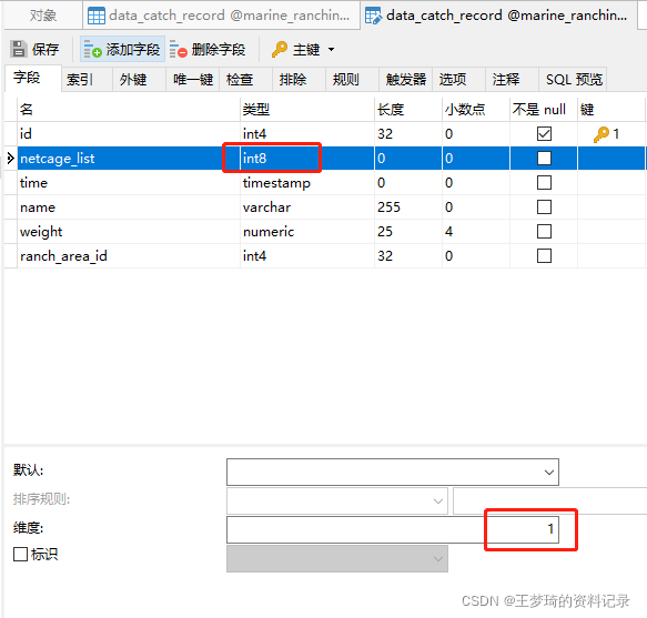 netcage_list字段就是一个数组字段,但是navicat显示的是int8,不过下面纬度为1。