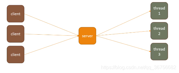 阻塞IO网络模型:服务器启动后会进入阻塞状态,等待client连接,每一个client端连接上服务器后,服务器会为每一个客户端起一个线程来处理客户端的需求。服务器的accept()方法、服务器新起的thread中,Socket的read()和write()方法都是阻塞的。