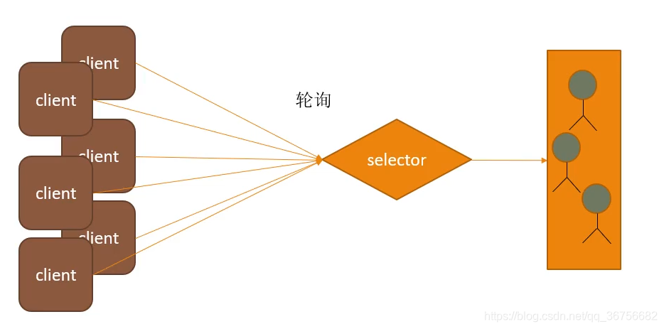 NIO单线程模型:采用selector管理的轮询查询模式,selector每隔一段时间都去看一下client端有没有产生需要处理的消息(客户端连接请求、客户端发送数据请求、客户端下载数据请求),也就是说selector会同时管理client端的连接和通道内client端的读、写请求。