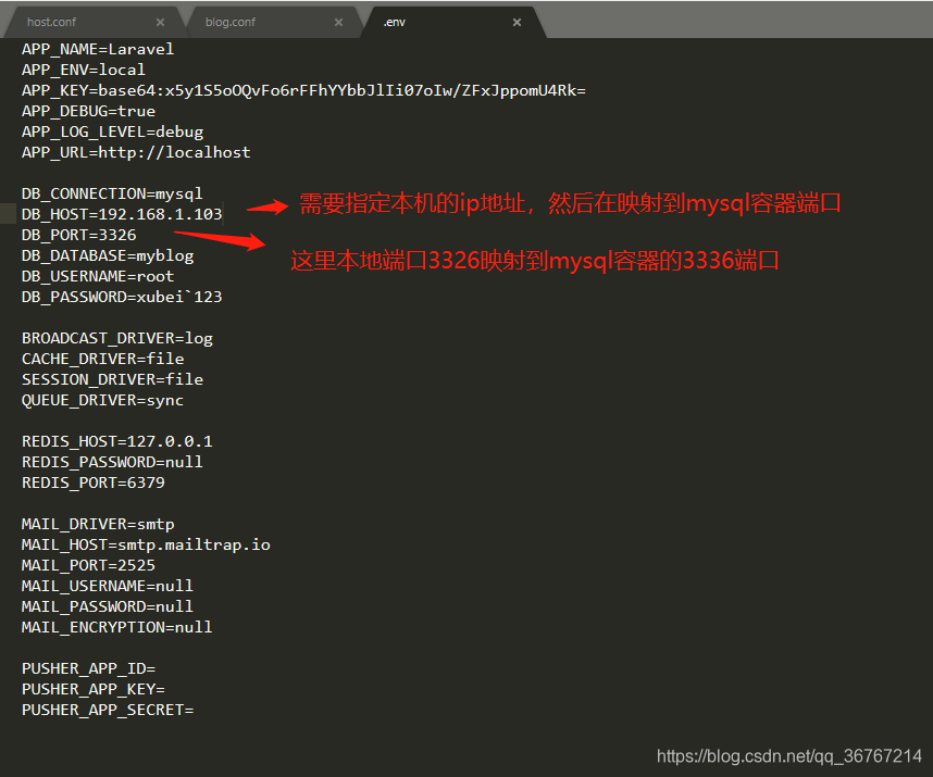 这里会出现数据库连接的错误,需要在.env文件中配置数据库连接,这里连的是前面运行的lnmp-mysql容器