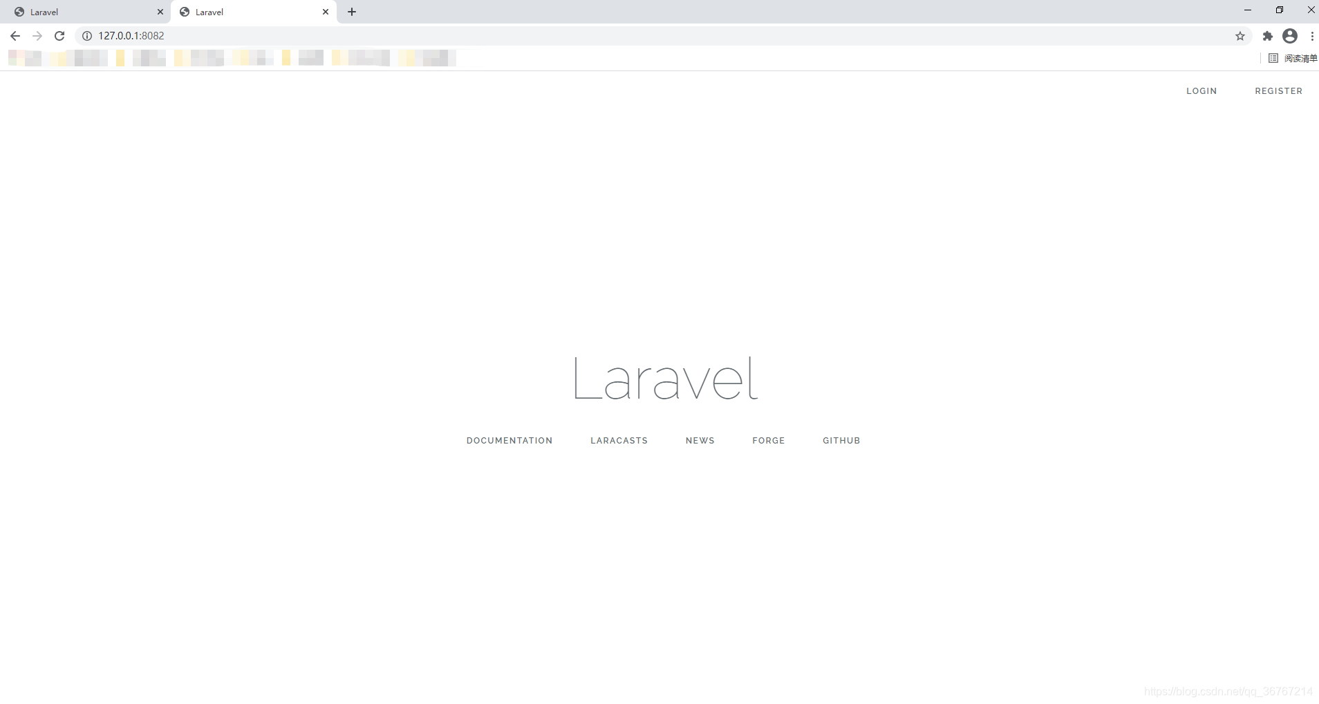 至此,windows下docker中的nginx配置运行laravel运行成功