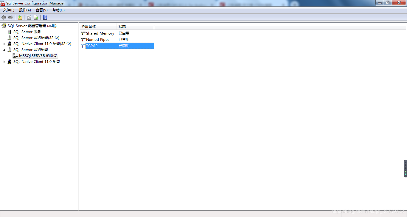 原因sqlserver网络配置中的TCP/IP协议被禁用,开启之后电脑重启即可正常连接