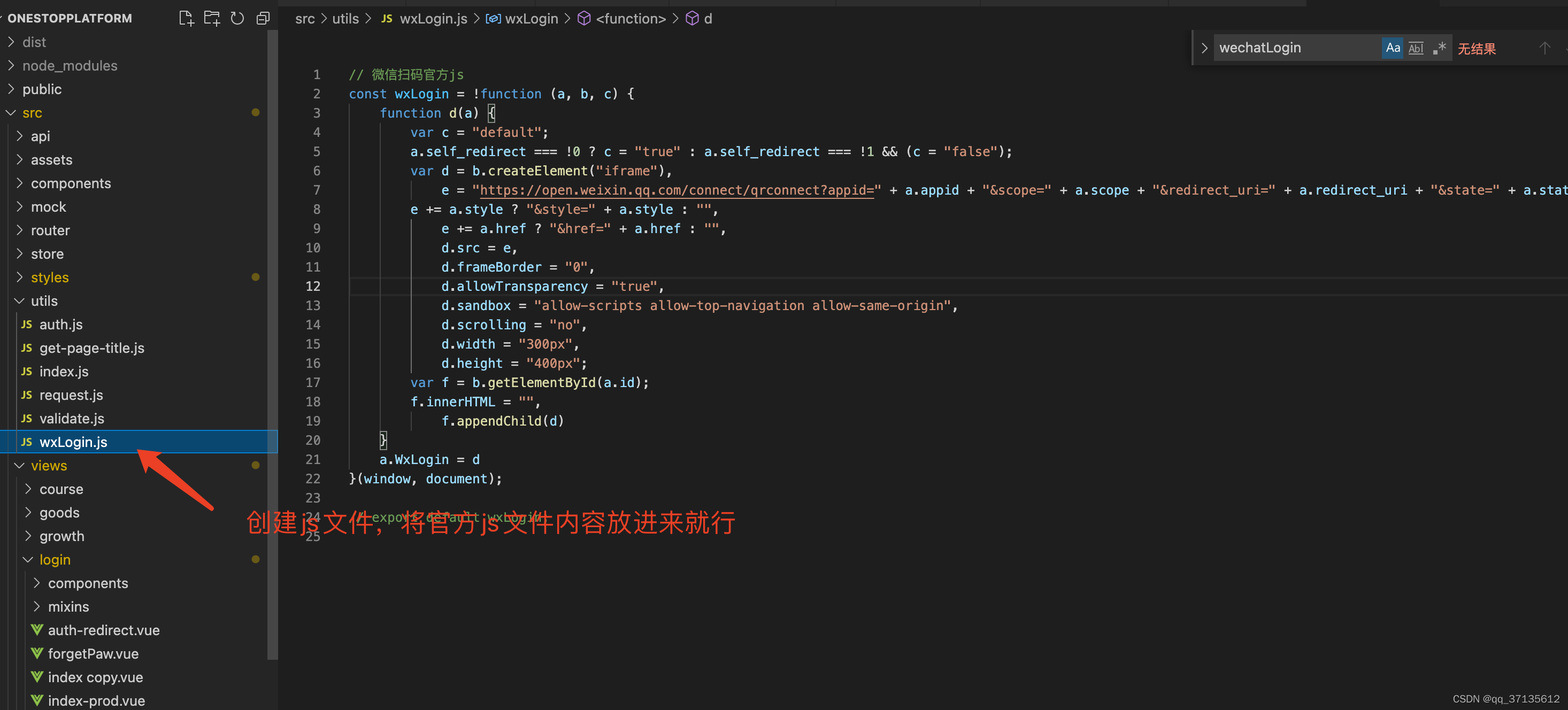 步骤2:在需要使用微信登录的地方实例以下JS对象