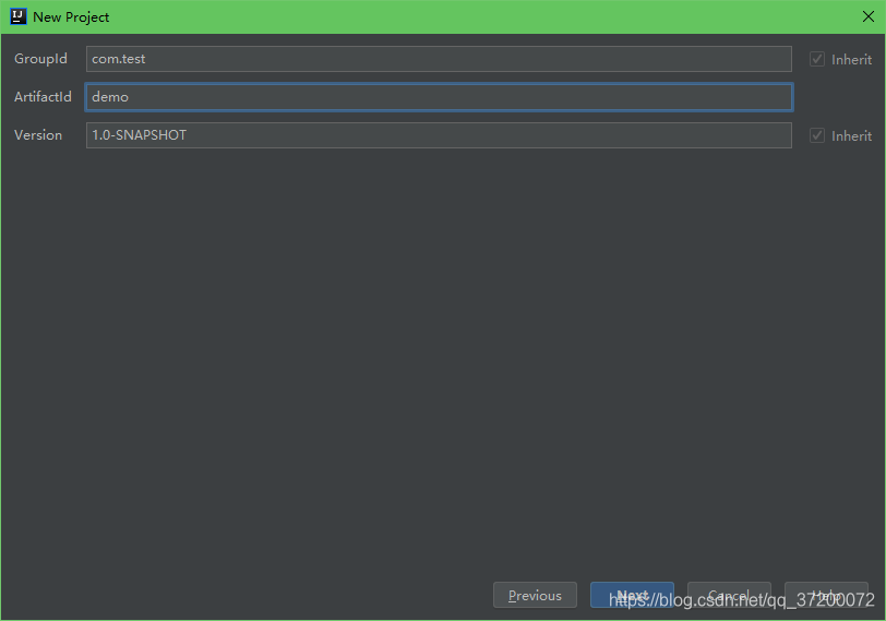 四、输入GroupId和ArtifactId,点击【Next】